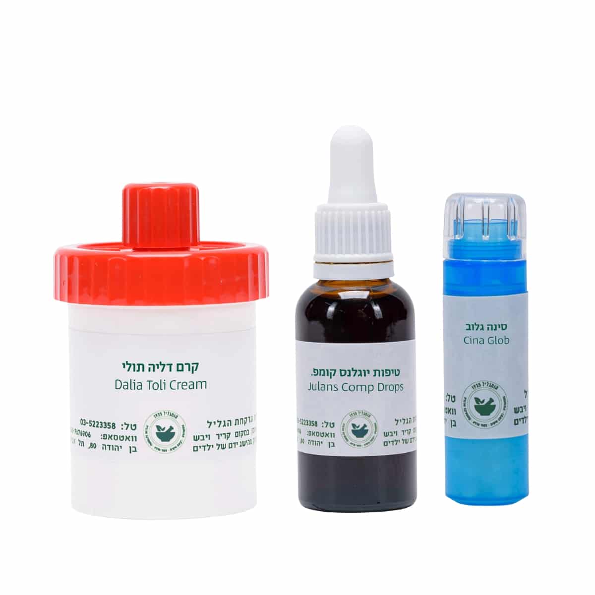 ערכה לטיפול בתולעי סיכה (מעיים) הכוללת שלושה תכשירים טבעיים: