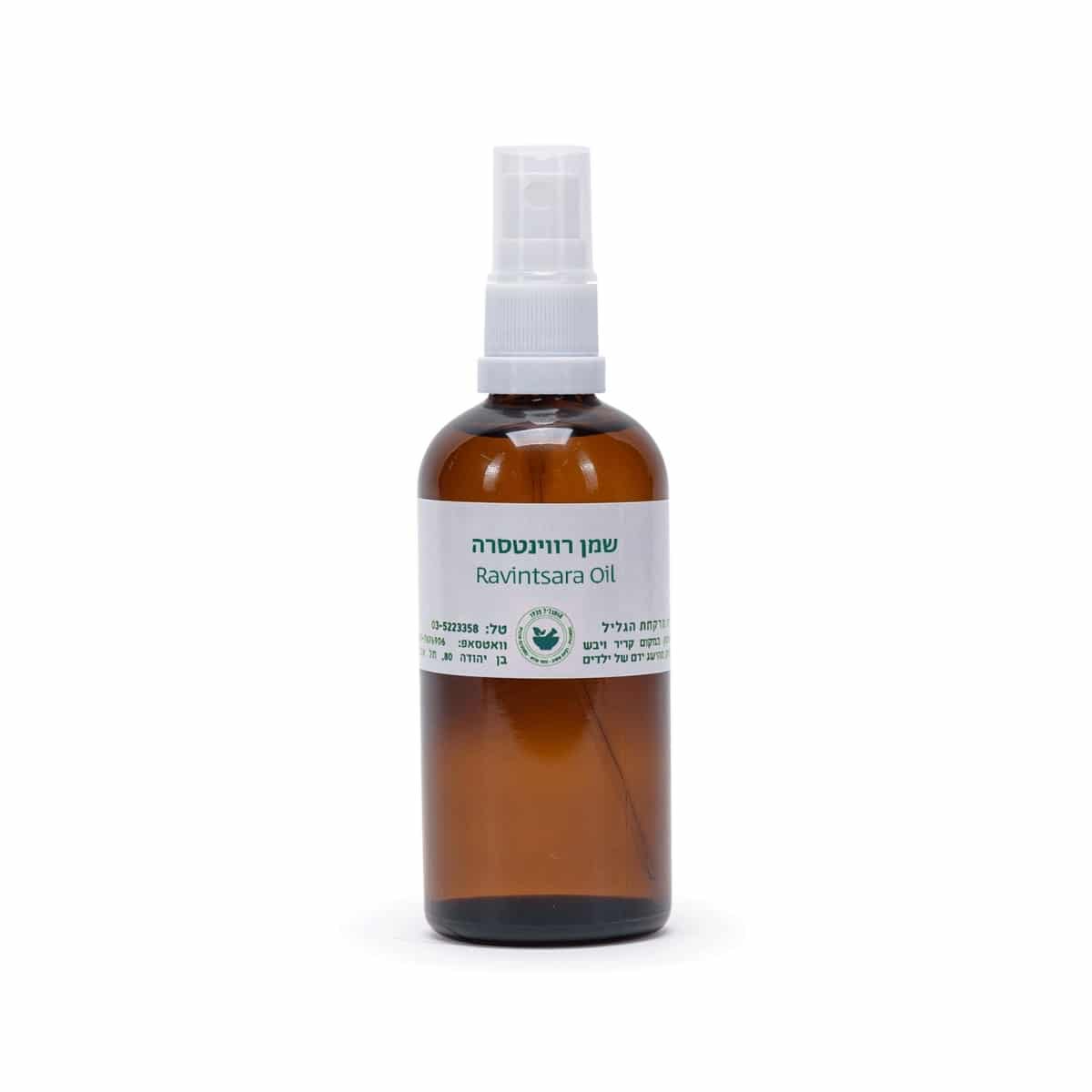שמן אתרי רווינטסרה בשמן שקדים לעיסוי בית החזה להקלה על תסמיני שיעול וליחה. בטוח לשימוש לילדים ותינוקות.
