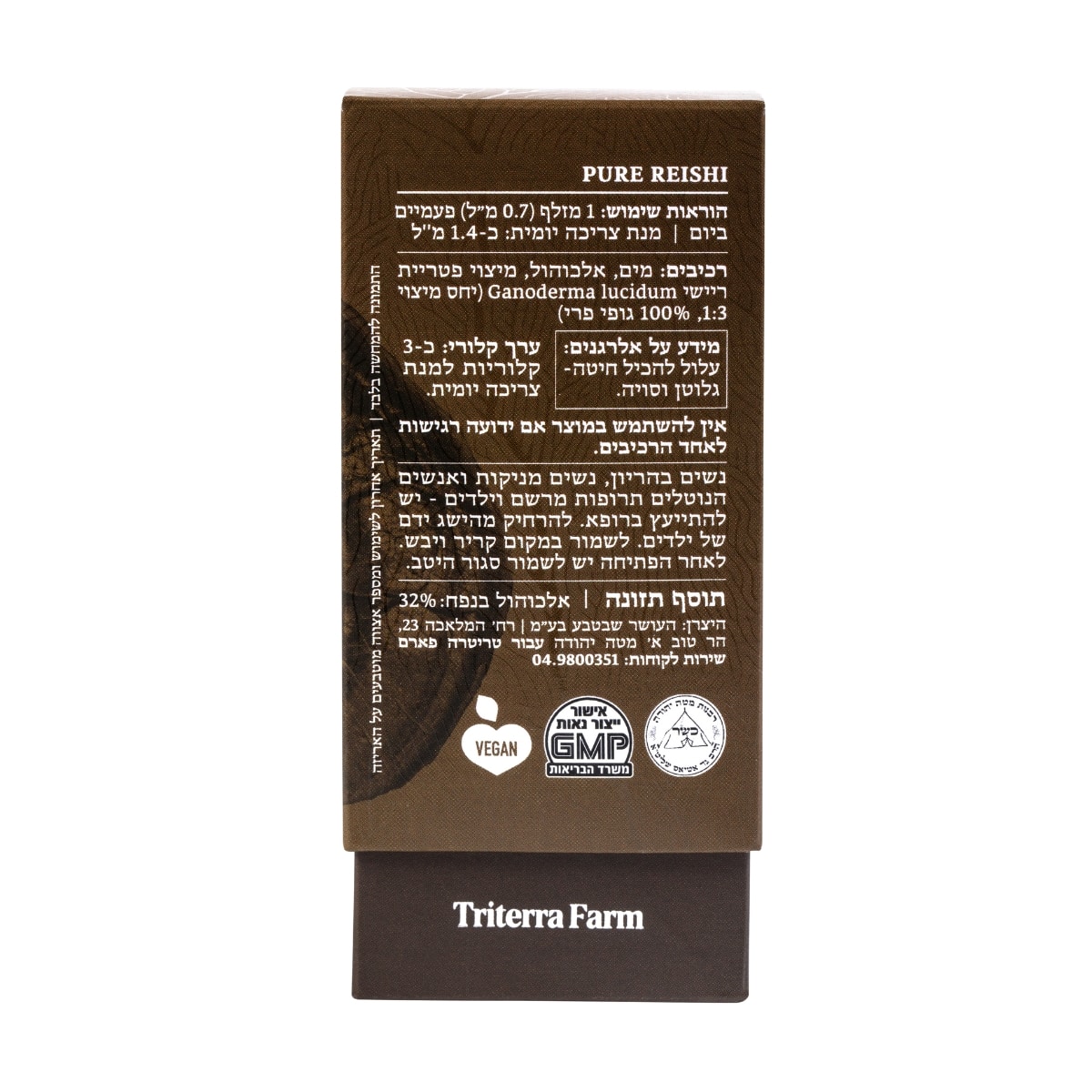 מיצוי משולש של פטריית ריישי 100% גופי פרי תוצרת "טריטרה פארם"- חוות בוטיק מיודפת שבגליל.